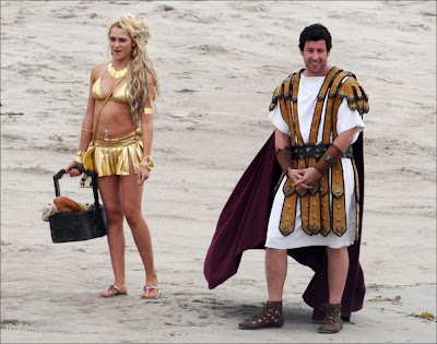 American audiences probably have no idea who Teresa Palmer is, but that should change when the Australian babe shows up in a gold bikini in Adam Sandler’s new comedy “Bedtime Stories”. In the film, Sandler plays a hotel handyman whose made-up bedtime stories starts to come true. Apparently one of those stories includes Sandler as a Roman soldier with Teresa Palmer in a gold bikini on a beach. Hey, I know I dream about that, too.